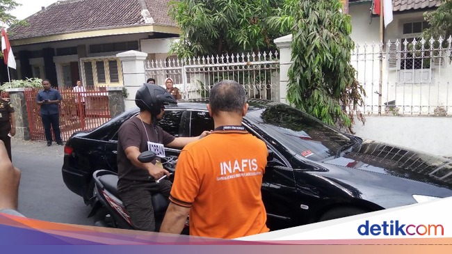 Polisi menghadirkan langsung tersangka Iwan Adranacus, Rabu (29/8/2018). Iwan tampak mengenakan penutup kepala dan duduk di dalam mobil bagian belakang.
